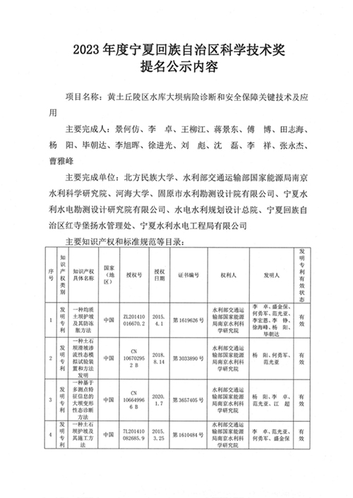 2023年度寧夏回族自治區(qū)科學(xué)技術(shù)獎提名公示